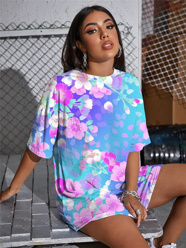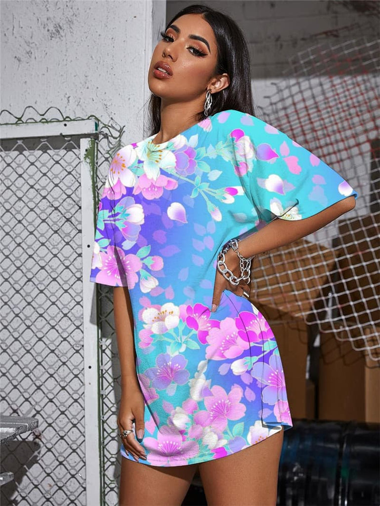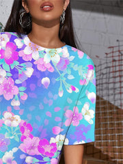 • Flower T-shirt Women Colorful Punk Rock Romantic Funny T shirts Gradient Gothic