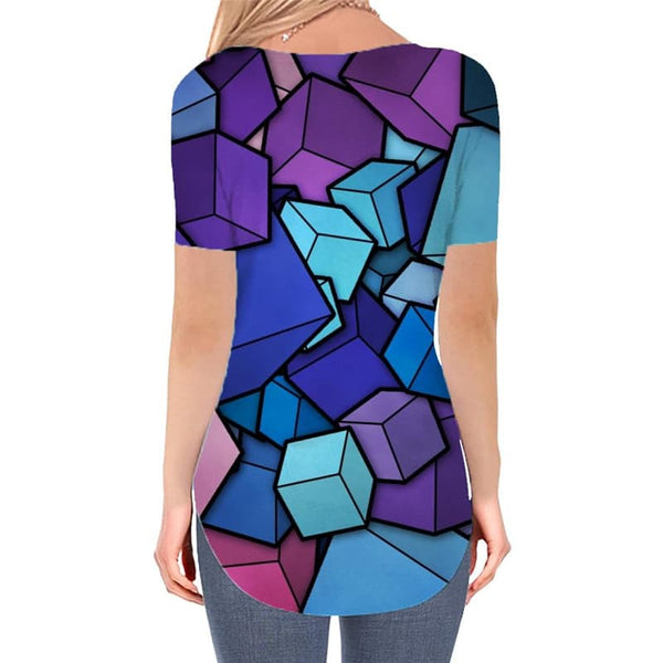 • Geometric T-shirt women Psychedelic Shirt Print Vortex T-shirts 3d Square Tshirts Printed