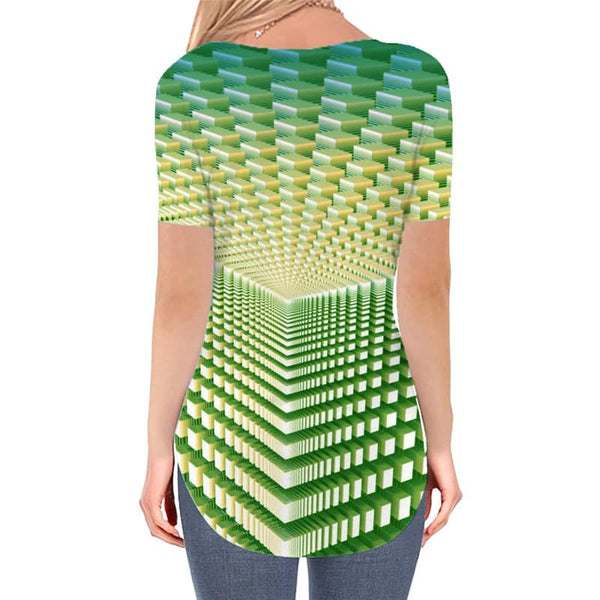• Geometric T-shirt women Psychedelic Shirt Print Vortex Tshirts Printed Green Funny T shirts
