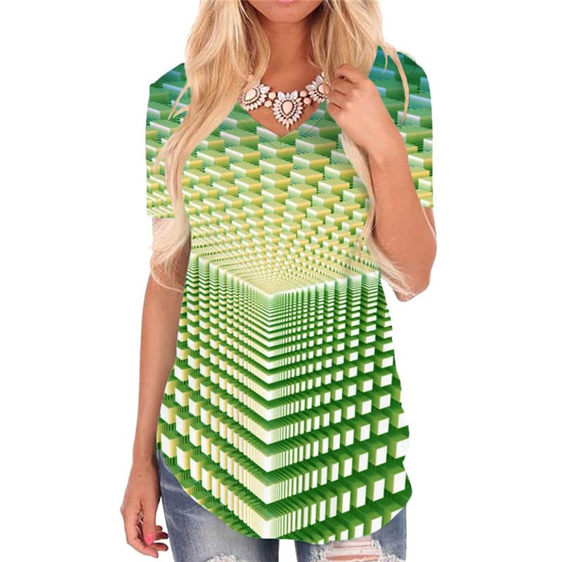 Geometric T-shirt women Psychedelic Shirt Print Vortex Tshirts Printed Green Funny T shirts