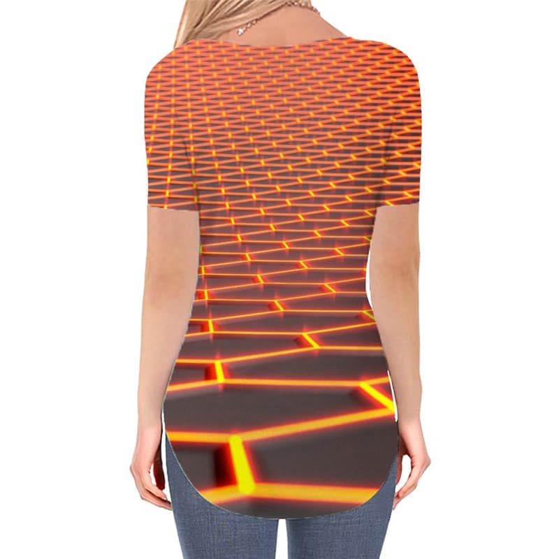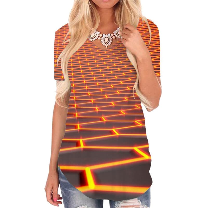 • Geometric T Shirt Women Psychedelic T-shirts 3d Vortex Funny T shirts Honeycomb Shirt Print Square V-neck Tshirt