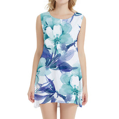 • Flower Dress Women Art Short Graffiti Office White Sexy Vintage Sundress Womens Clothing Tassel