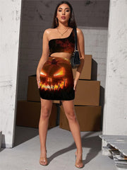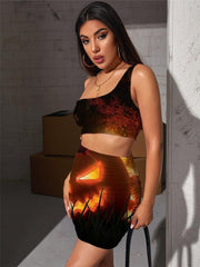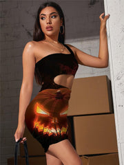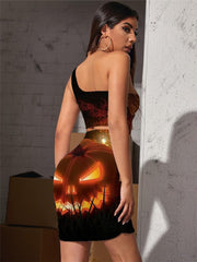 • Halloween Dresses Women Pumpkin Hollow out Dresses Tree Pleating Jesus 3d Print