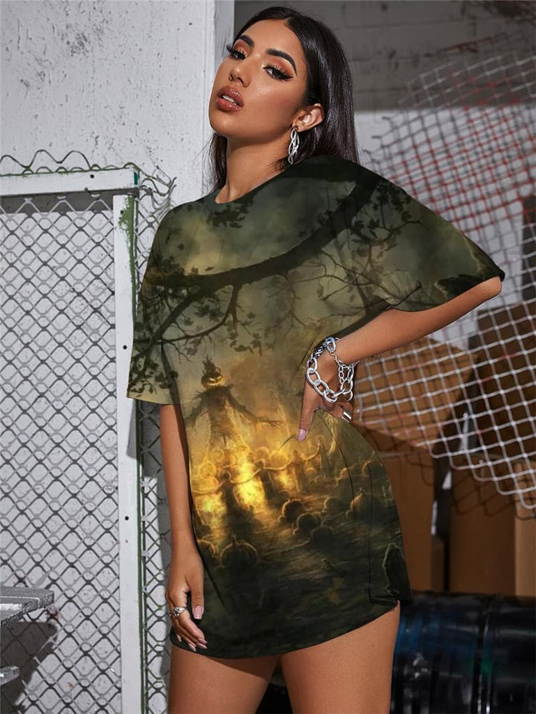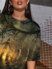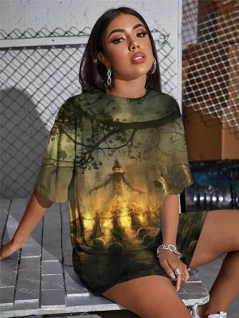 • Halloween T Shirt Women Pumpkin Punk Rock Bat Summer Tree T-shirts 3d