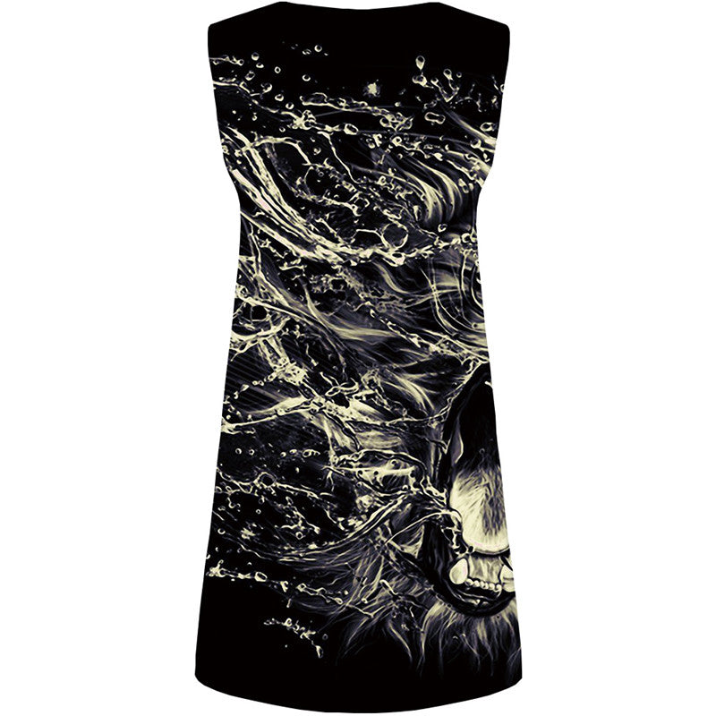 Lion Dresses Women Harajuku Halter Sleeveless Black 3d Print Animal Ladies Dresses Angry Sundress Womens Clothing Plus Size