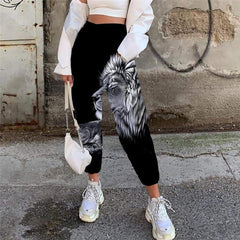 Lion Trousers Women Animal Trouser Anime 3d Printed Hilarious Casual Pant Black High Waist Pants - KYKU