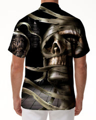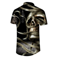 Beach men's casual Hawaiian button abstract 3d print black hell skull king shirt short sleeve clothing