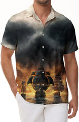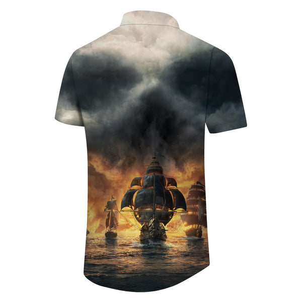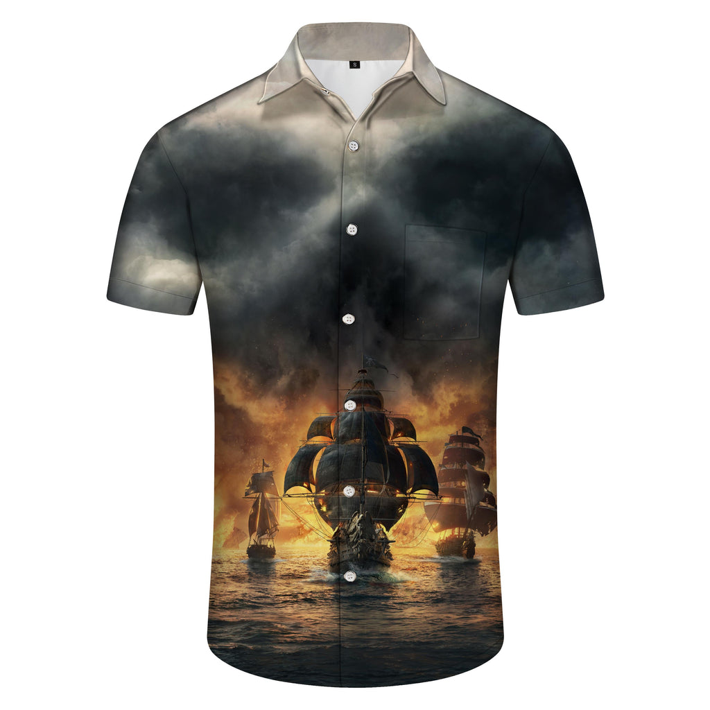 Brand new men's pirate ship print casual hawaiian button down shirt short sleeve clothing pattern mixed color