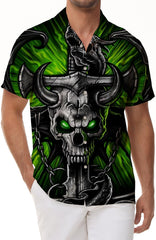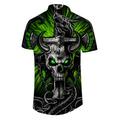 • Daily Hawaiian button men's casual button shirt short sleeve clothing abstract 3d print black forest skull cow