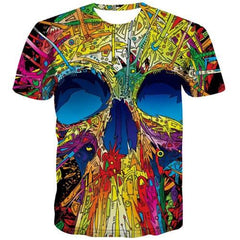 Psychedelic T-shirt Men Skull Shirt Print Colorful T-shirts Graphic Abstract Tshirts Casual Street Tshirt Printed Short Sleeve - KYKU
