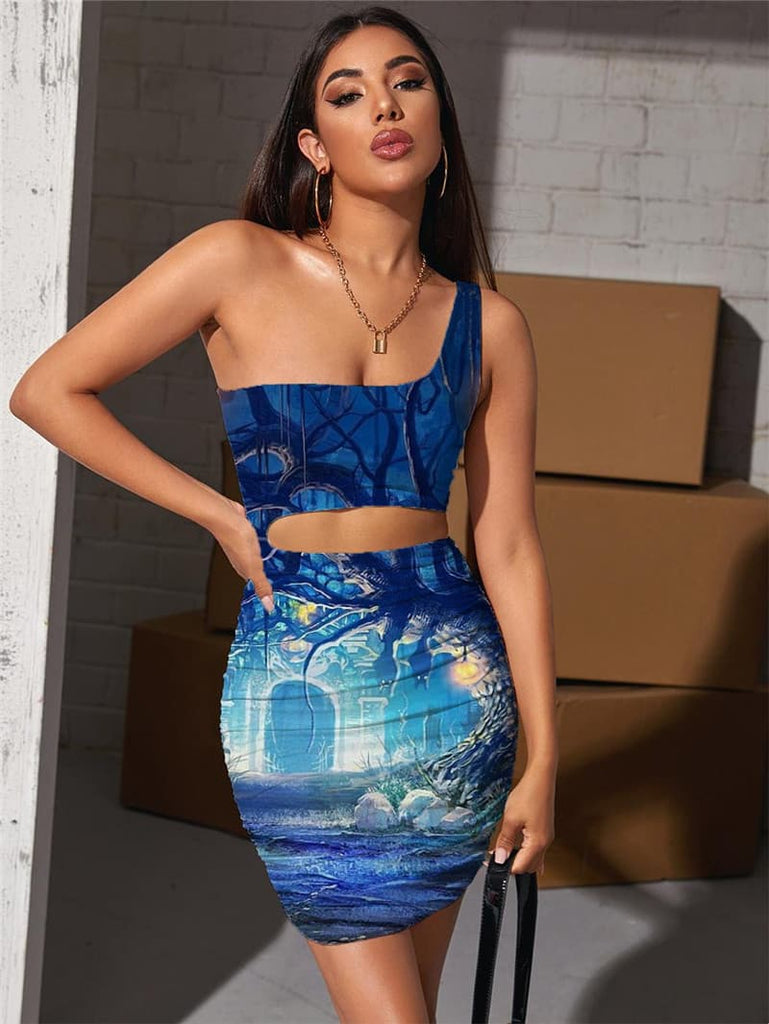 Exterior color:The color is the same as the picture, there is no color difference, the pattern is bright in color, and the dress is fashionable and young.