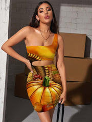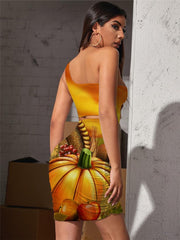 Pumpkin Dress Women Halloween Vestido Sexy Food Pleating Landscape Hollow out Dresses