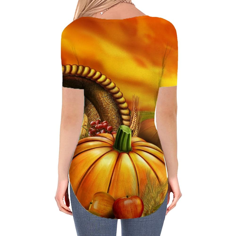• Pumpkin T Shirt Women Halloween Funny T shirts Food V-neck Tshirt Landscape T-shirts 3d