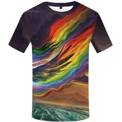 Rainbow T shirts Men Feather Tshirts Cool Colorful Shirt Print Cartoon T-shirts Graphic Galaxy Space Tshirts Novelty - KYKU
