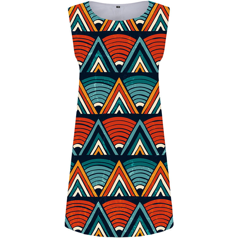 • Lattice Dress Women Retro Tank Geometry Short Colorful Beach Womens Clothing Summer