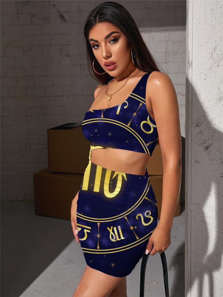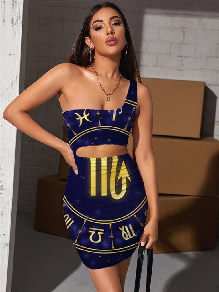 Scorpio Dresses Women Galaxy 3d Print Character Pleating Novel Halter Sleeveless