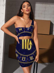 • Scorpio Dresses Women Galaxy 3d Print Character Pleating Novel Halter Sleeveless