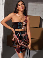 • Skull Dresses Women Skeleton 3d Print Hip Hop Halter Sleeveless Punk Bodycon Dress Rock Vestido Sexy
