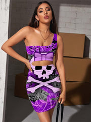 Skull Dresses Women Kawaii Pleating Hip Hop Bodycon Dress Lovely Hollow out Dresses
