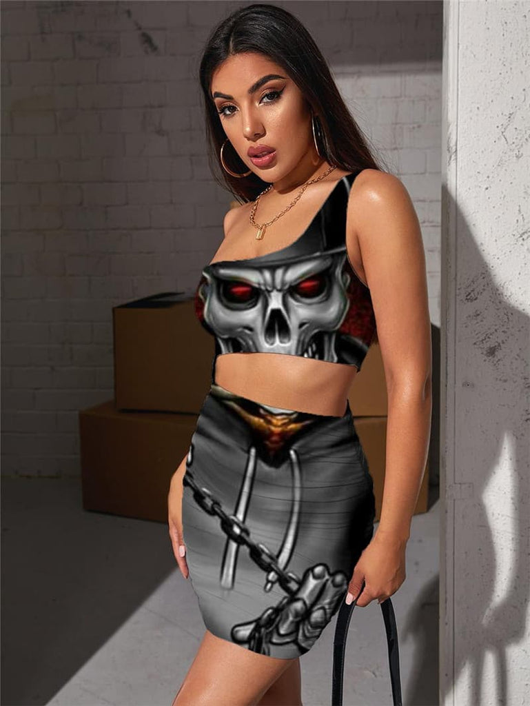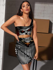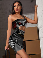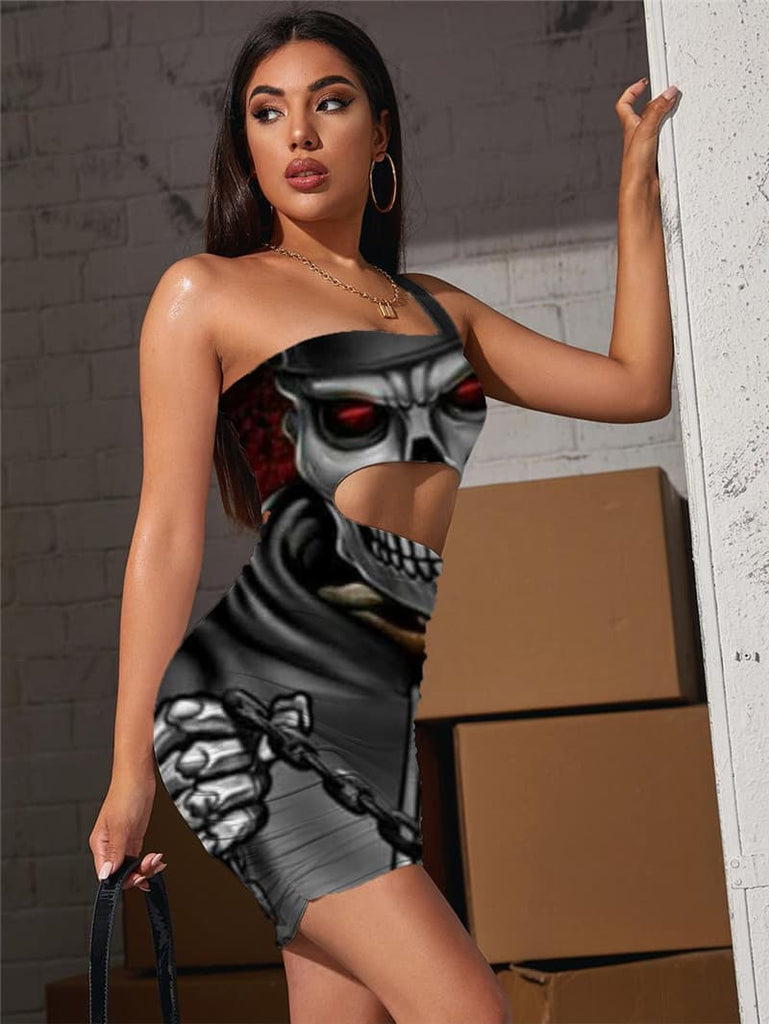 • Skull Dresses Women Skeleton 3d Print Rock Vestido Sexy Hip Hop Pleating