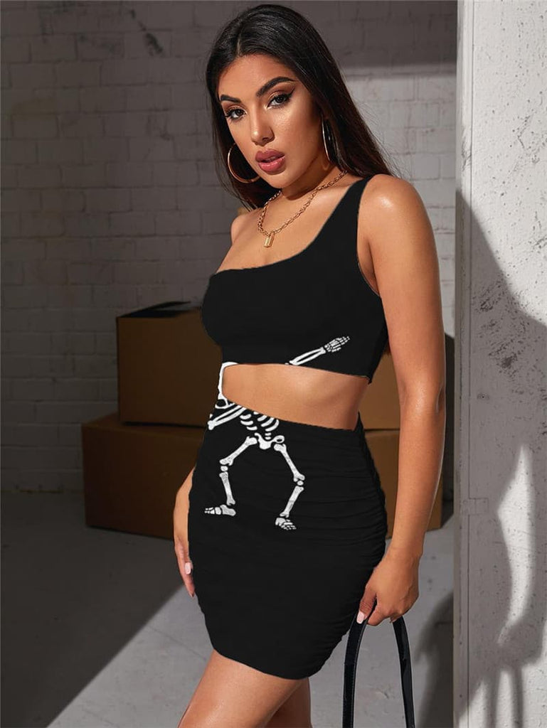 • Skull Dresses Women Skeleton Halter Sleeveless Dancing Pleating Rock Vestido Sexy