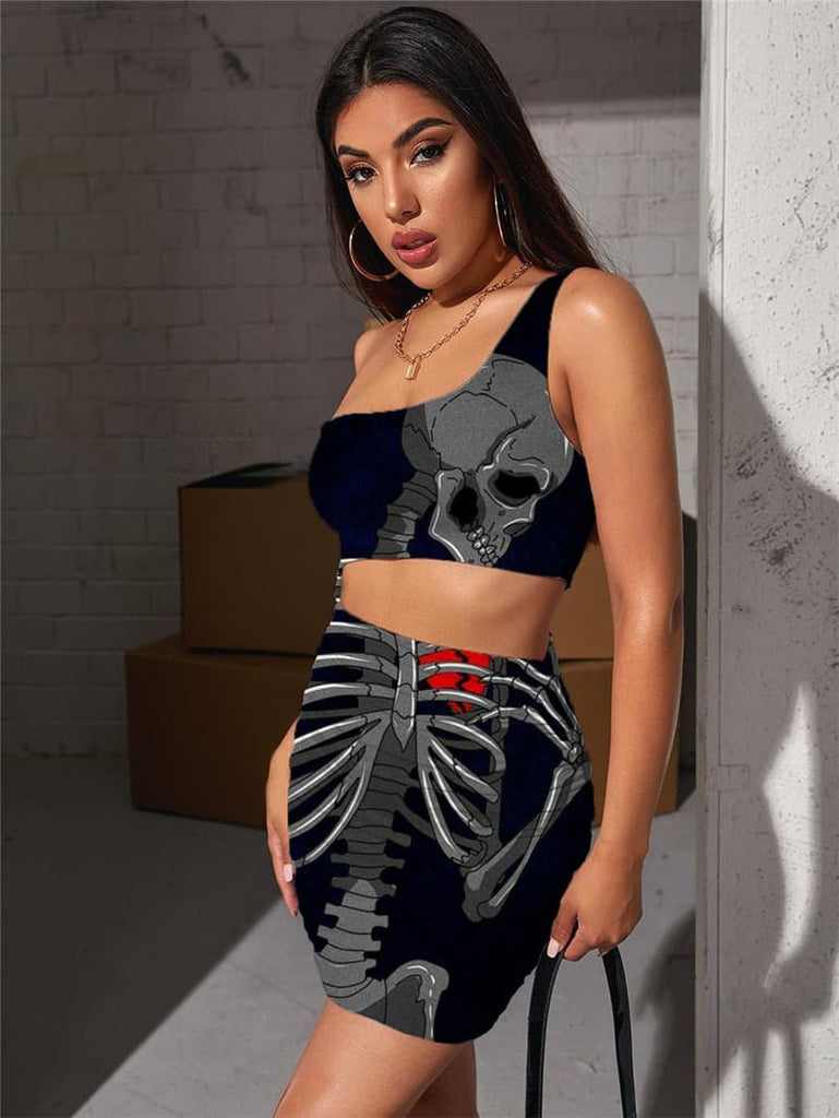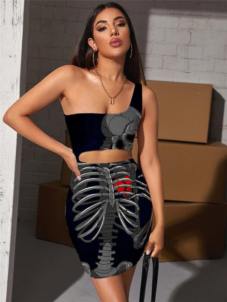 Skull Dress Women Skeleton Hollow out Dresses Hip Hop Pleating Funny Bodycon Dress