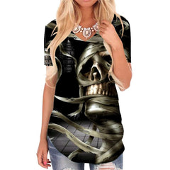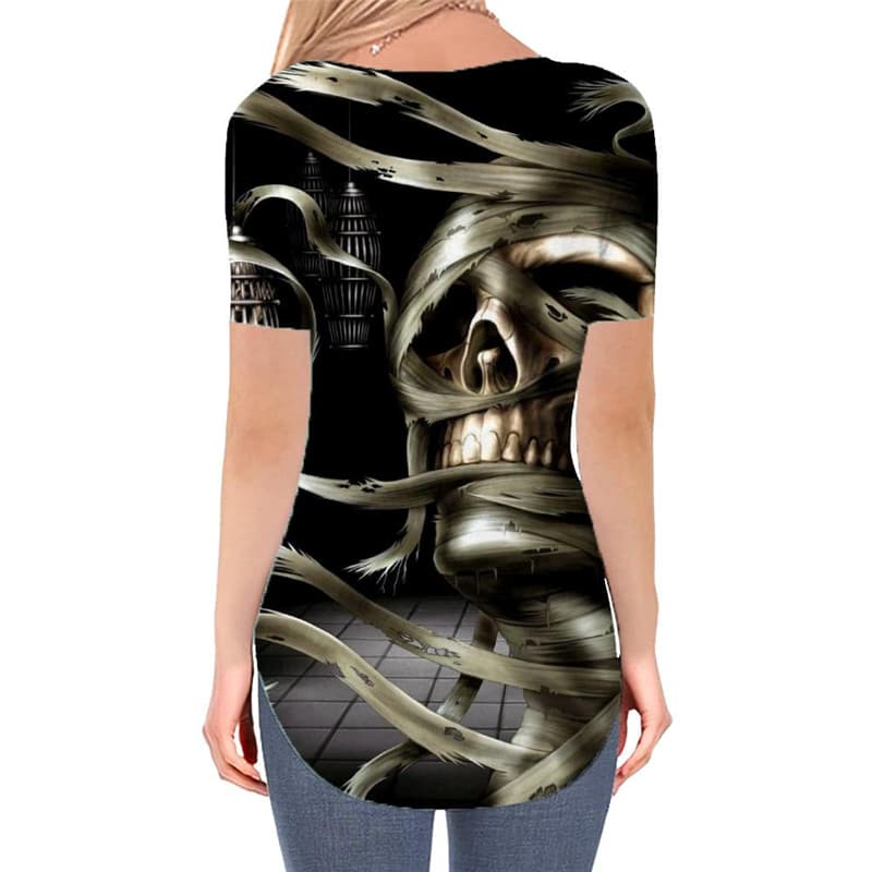 • Skull T-shirt women Punk Tshirts Printed Mummy Shirt Print Zombie V-neck Tshirt