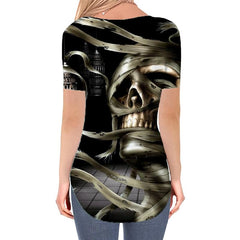 Skull T-shirt women Punk Tshirts Printed Mummy Shirt Print Zombie V-neck Tshirt