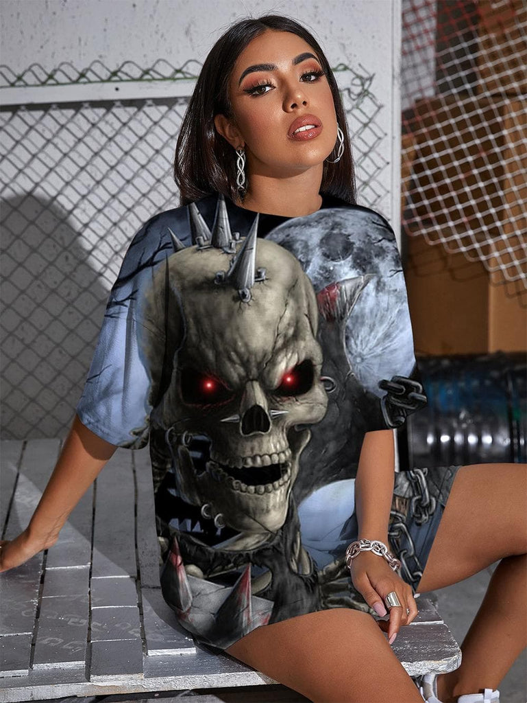 • Skull T-shirt Women Skeleton T-shirts 3d Halloween Tshirt Printed Moon Punk Rock