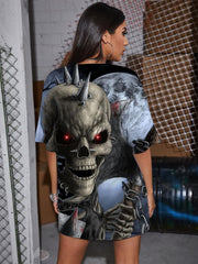 Skull T-shirt Women Skeleton T-shirts 3d Halloween Tshirt Printed Moon Punk Rock
