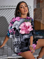 Skull T Shirt Women Flower T-shirts 3d Galaxy Summer Rock Funny T shirts