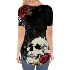 • Skull T Shirt Women Flower Shirt Print Colorful T-shirts 3d Graffiti V-neck Tshirt