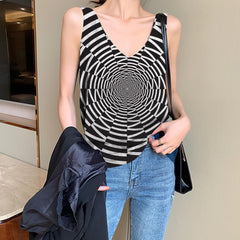 Geometric Tank-Top women Psychedelic Anime Clothes Vortex Funny Top Time Tunnel Sleeveless 3d Black And White Vest Printed - KYKU