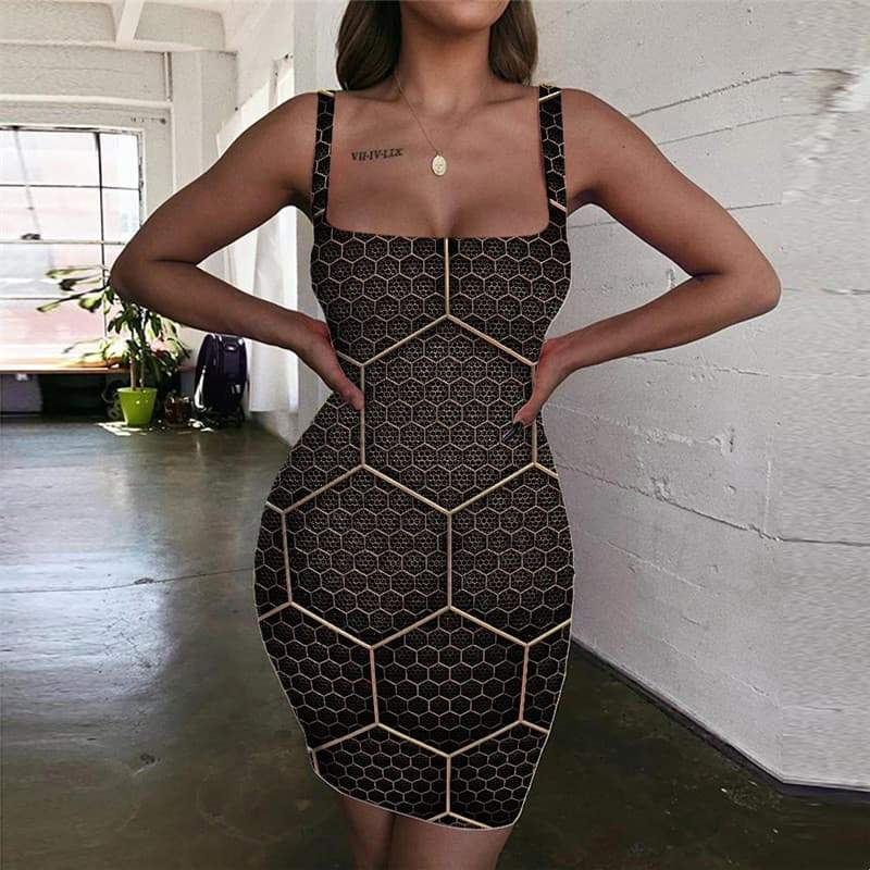 Geometric Dress Women Psychedelic Ladies Dresses Vortex Vestido Sexy Honeycomb Halter Sleeveless - KYKU