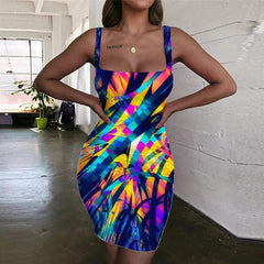 Geometric Dresses Women Psychedelic Halter Sleeveless Vortex 3d Print Color Bodycon Dress - KYKU
