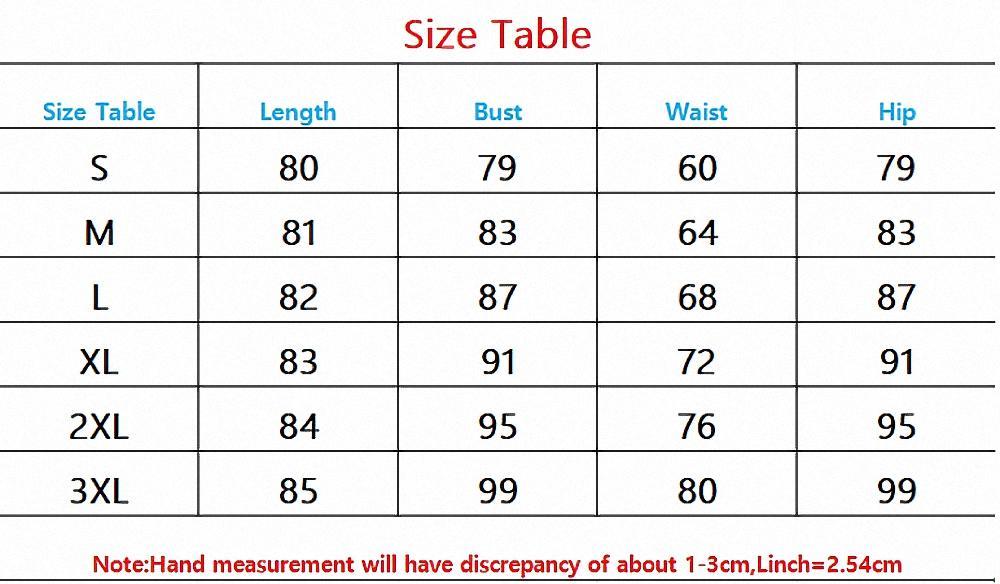3XL:Length 85cm, Bust 99cm, Waist 80cm, Hip 99cm