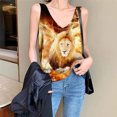 • Lion Tank-Top women Animal Vest Printed Anime Tank Tops Casual Flame Anime Clothes Hilarious Vest Print