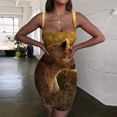 Lion Dress Women Animal Bodycon Dress Anime 3d Print Lovely Ladies Dresses Street Vestido Sexy - KYKU