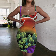 • Fish Dress Women Purple Bodycon Dress Harajuku Vestido Sexy Jellyfish Halter Sleeveless Animal 3d Print