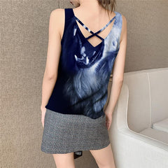 • Lion Tank Top Women Animal Tank Tops Casual Anime Vest Printed Harajuku Sleeveless 3d Ferocious Funny Top