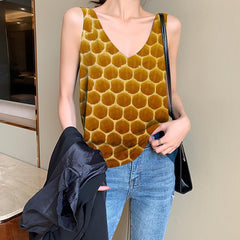 Geometric Tank-Top women Psychedelic Funny Top Vortex Vest Print Honey Sleeveless 3d Honeycomb Anime Clothes - KYKU