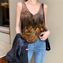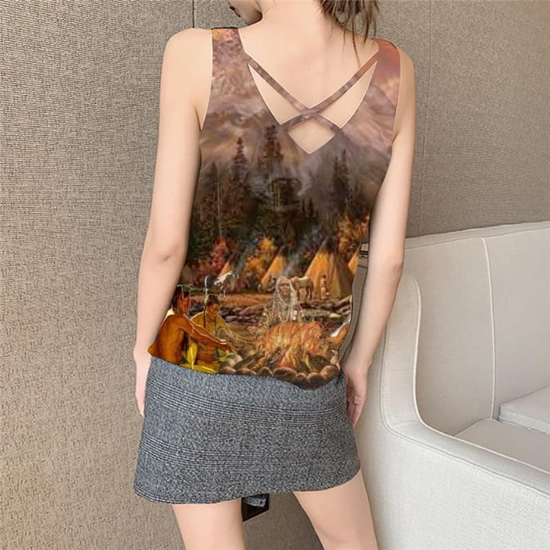 Indios Tank-Top women Wolf Vest Print Flame Anime Clothes Forest Funny Top