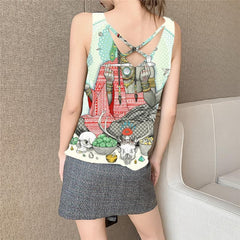 • Indios Tank Top Women Skull Funny Top Food Vest Print Animal Vest Printed