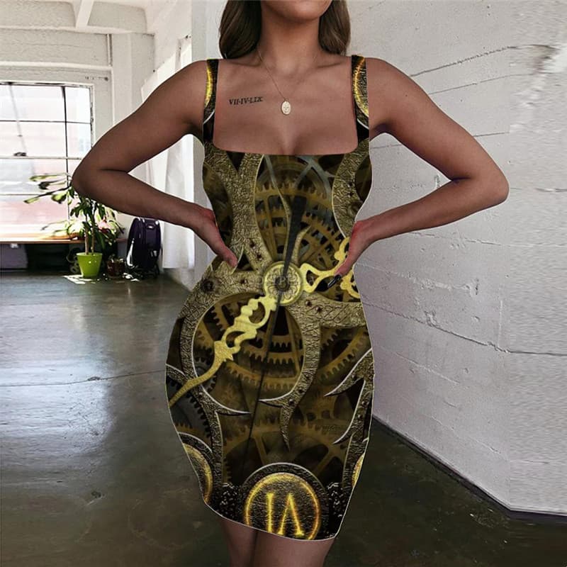 • Metal Dress Women Engine Ladies Dresses Gear Bodycon Dress Clock Vestido Sexy