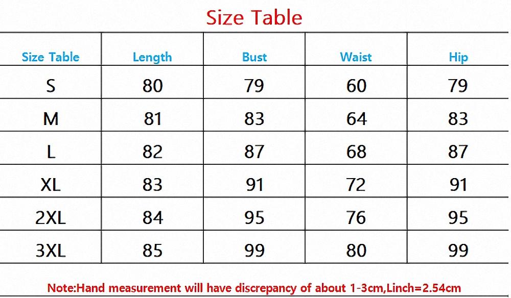 3XL:Length 85cm, Bust 99cm, Waist 80cm, Hip 99cm