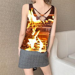 Flame Tank Top Women Radio Tank Tops Casual Music Vest Printed Womens Clothing