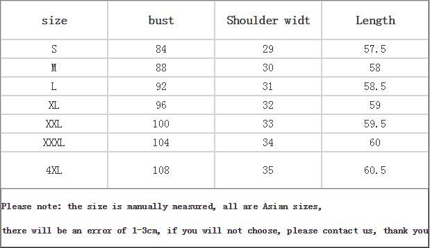 3XL:Length 60cm, Bust 104cm,  Shoulder widt 34cm
