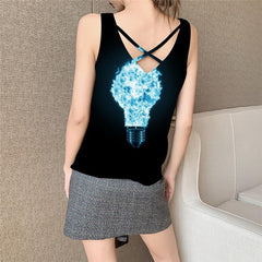 Flame Tank-Top women Light Bulb Vest Printed Black Anime Clothes Womens Clothing