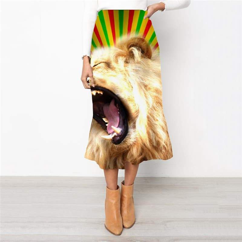Lion Skirts Women Animal School skirt Anime Skirt Ladies Abstract Rock Frauen Hilarious High waist skirts - KYKU