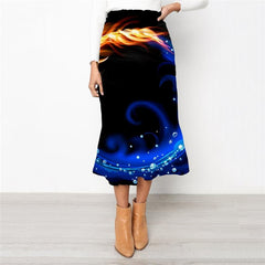 • Blue Flame Skirt Women Red Flame High waist skirts Colorful Skirt Ladies Harajuku School skirt